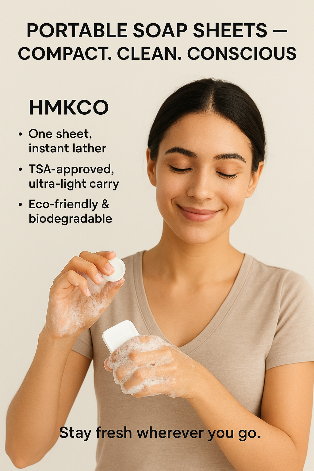 Say goodbye to messy liquid soaps and bulky bottles. HMKCO’s Portable Soap Sheets dissolve instantly with just a little water, giving you a rich, foamy lather for fresh and hygienic hands wherever you are.